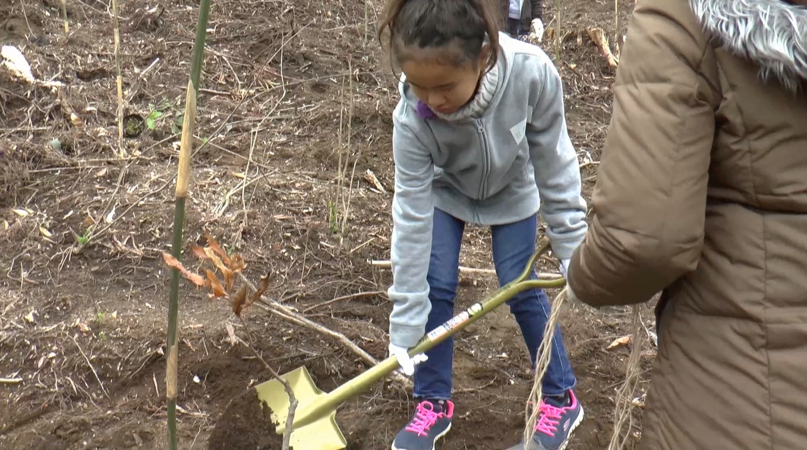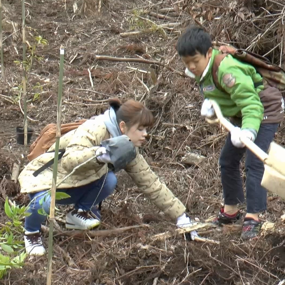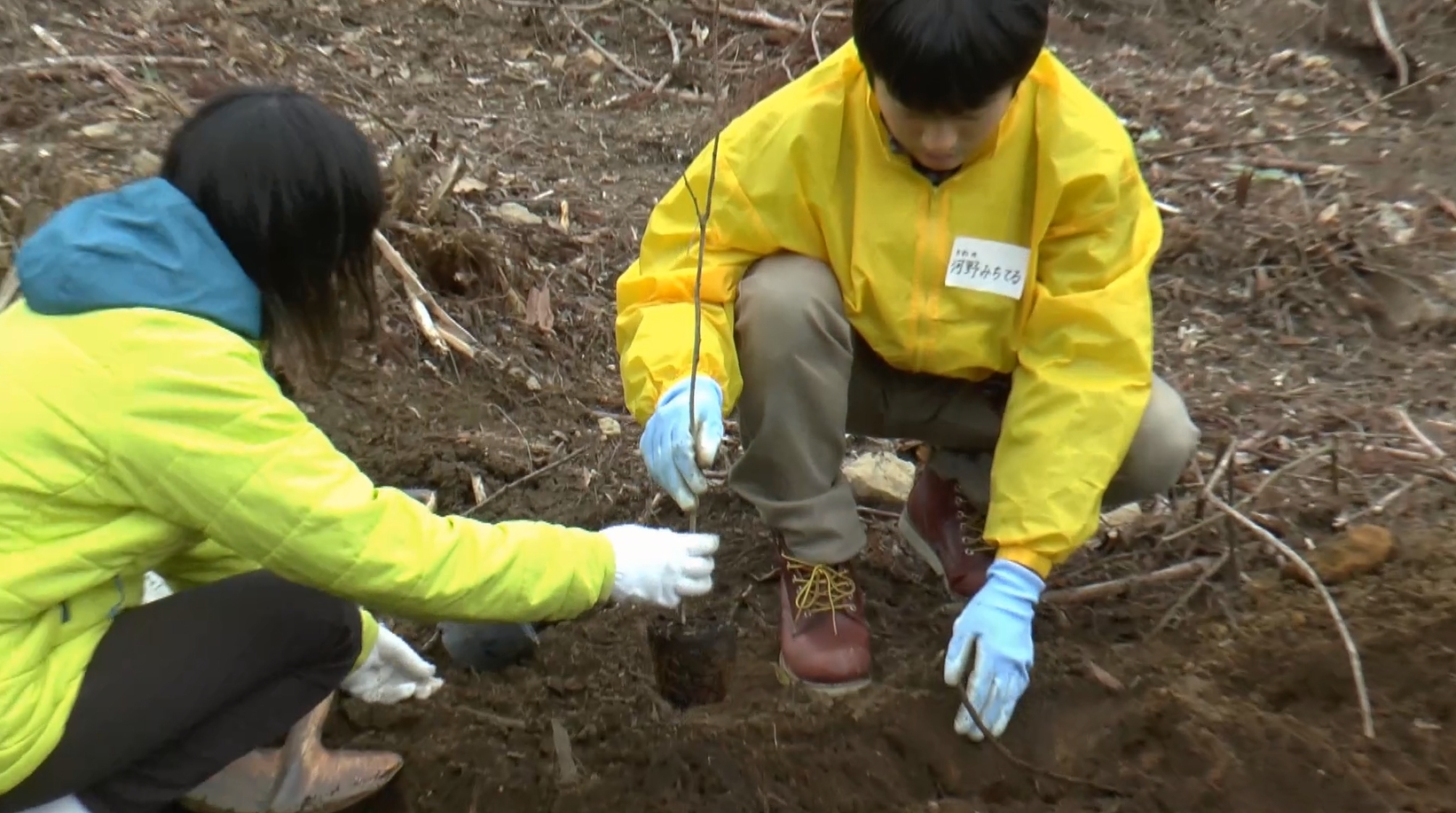 | 植樹 | ●第11回目を迎えた今回の「いのちの森づくり植樹祭」では、伐採したばがりの杉林の跡地に山桜、樫の木、クヌギ、もみじ計200本を植えました。 ●どこを掘っても根っこが多くて結構大変でしたが、小さいお子さんが一緒の家族連れの皆さんやご夫婦で楽しく会話しながら植えて下さいました。 |