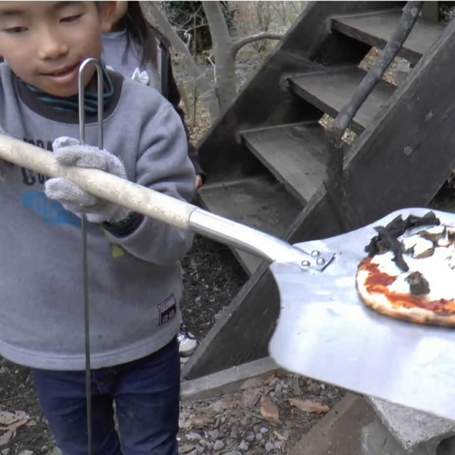 | ピザ | ●今回の植樹に間に合うように製作したピザ窯で合計17枚のピザを焼いて、参加者の皆さんにふるまいました。焼き立てでもあり、皆でワイワイと食べることでより美味しさを感じてもらうことができました。 ●ピザの生地は前日から準備して二次発酵したものを皆さんに延ばしてもらって、それにピザソース、チーズ、じとっこの燻製などをトッピングして焼き上げました。参加者のなかで二名に実際の焼き体験をしてもらい喜んでいただきました。 |