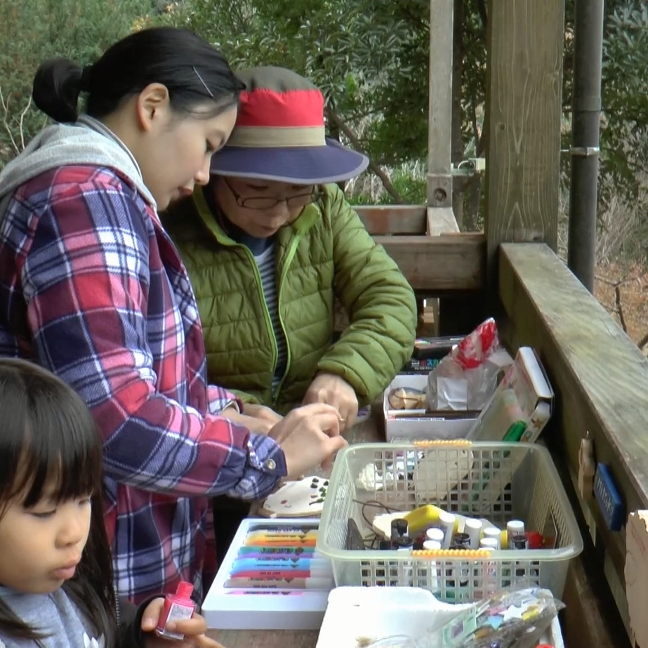 | 創作 | ●体験の一つのプログラムに、炭焼きがありましたが、時間が足りなかったこともあり充分に焼けるまでに至らず、次回への課題となりました。 ●杉板に書いた来年の干支であるいのししを元木さんが切り抜いて、それに目などを書き入れる体験では、みなさん真剣に取り組んで結構りっぱなものができました。 |