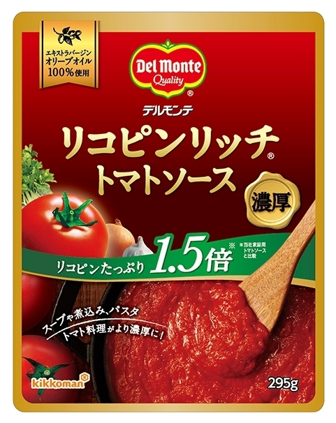 完熟トマトのリコピンが通常のトマトソースの1.5倍(*)入った、濃厚な味わいのトマトソースです。